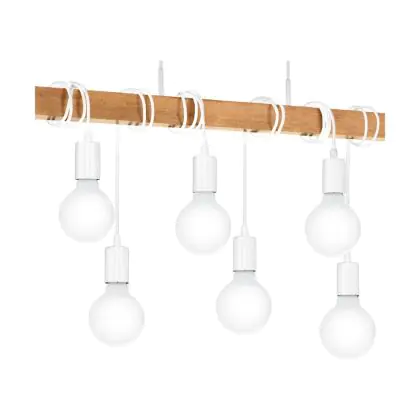 Eglo Hanglamp Townshend Staal Wit Hout | IP20 - Geschikt voor 6x E27