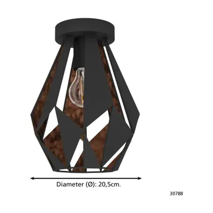 Beschrijving Eglo Plafondlamp Carlton 1 Staal Zwart Koper | IP20 - Geschikt voor 1x E27