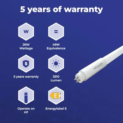 Beschrijving Noxion LED Buis T5 Avant Extreme (HF) High Output 26W 3510lm - 830 Warm Wit | 145cm - Vervangt 49W