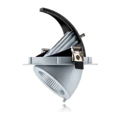 Een downlight is eigenlijk een ronde inbouwspot voor plafonds. In winkels (waar deze spots veel gebruikt worden) zitten veel downlights met conventionele CDM lampen. Deze zijn nu eenvoudig vervangbaar door LED. Een downlight die je uit het plafond kunt kantelen zoals deze, wordt ook wel een banaanspot genoemd.
