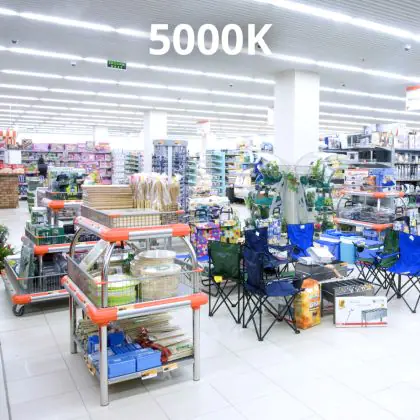 LED lichtlijnen zijn optimaal toepasbaar in grote hoge ruimtes. Hierbij kun je denken aan productiehallen, magazijnen, maar ook XL supermarkten of winkels met een hoog plafond. Dit is mogelijk door de hoge lichtopbrengst van 9000 Lumen. Verder verschaft de EasyTrunk lichtlijn met een koele witte lichtkleur van 5000K (Kelvin) helder licht aan zijn omgeving.