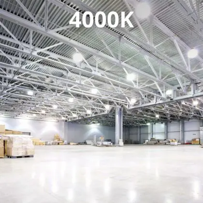 De kleurtemperatuur 4000 Kelvin geeft een koel wit licht. De naam zegt het eigenlijk al; je zult qua licht een koele / frisse tint ervaren. Deze lichtkleur is ook goed voor de concentratie en het dag/nacht ritme. Je kunt ervoor kiezen om het licht indien gewenst nog warmer te maken. Dat doe je door deze Noxion LED High-bay te dimmen. Hiermee heb je dus zelf de volledige controle over de lichtintensiteit van dit armatuur. Bij 1-10V dimmen wordt er een analoog signaal (tussen 0 en de 10 volt) aan de verbonden driver gezonden. Je hoeft dus geen losse LED dimmer aan te schaffen. Ben je op zoek naar een soortgelijke High-bay in de kleurtemperatuur warm wit (3000 Kelvin)? Klik dan hier.